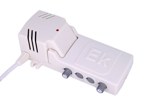 Micro domovní zesilovač s jedním vstupem a SAW filtrem. Kompatibilní se systémem Ekoax (distribuce ethernetu přes koaxiální kabel). Třída A. O provozu informuje LED indikátor. Součástí balení je napájecí adaptér.