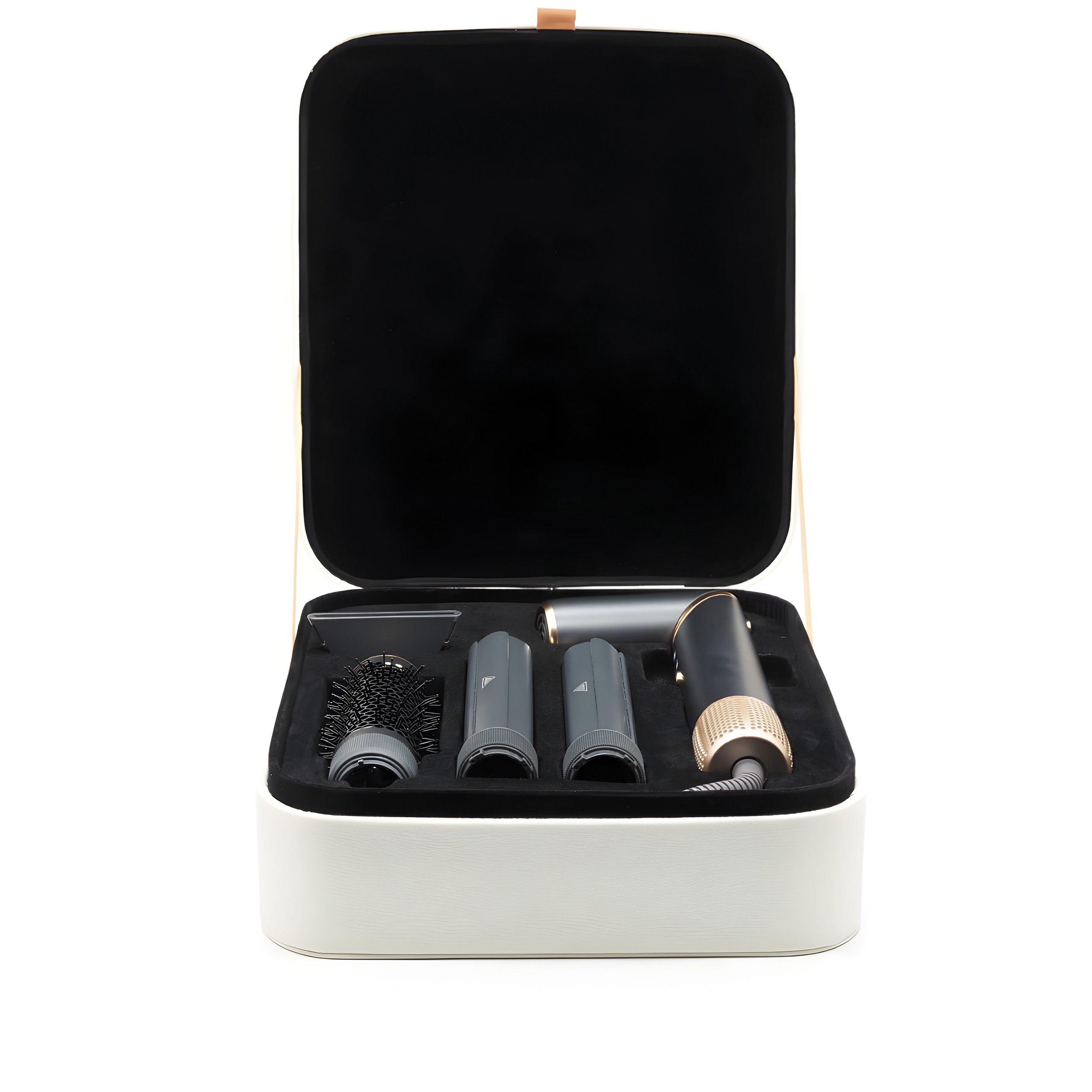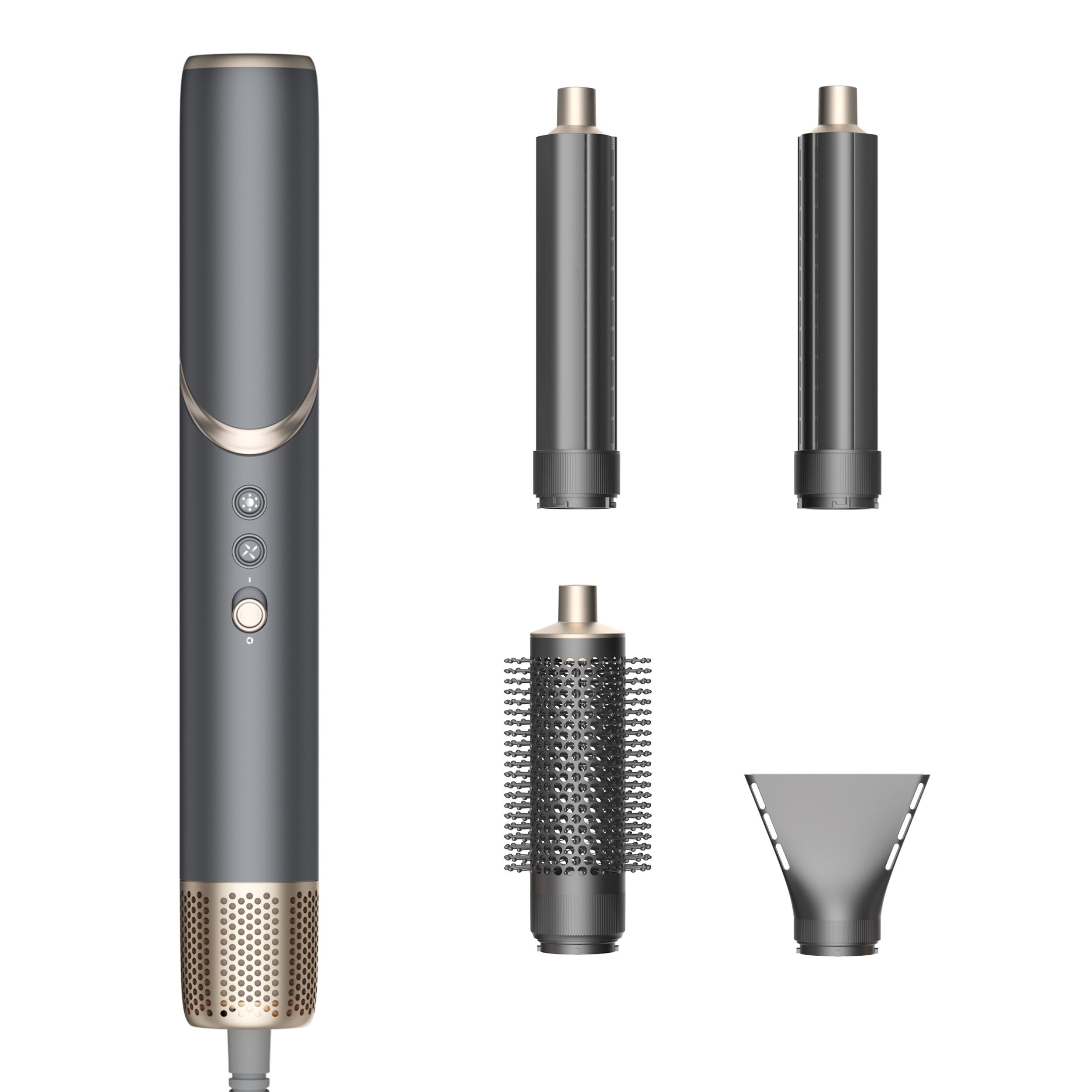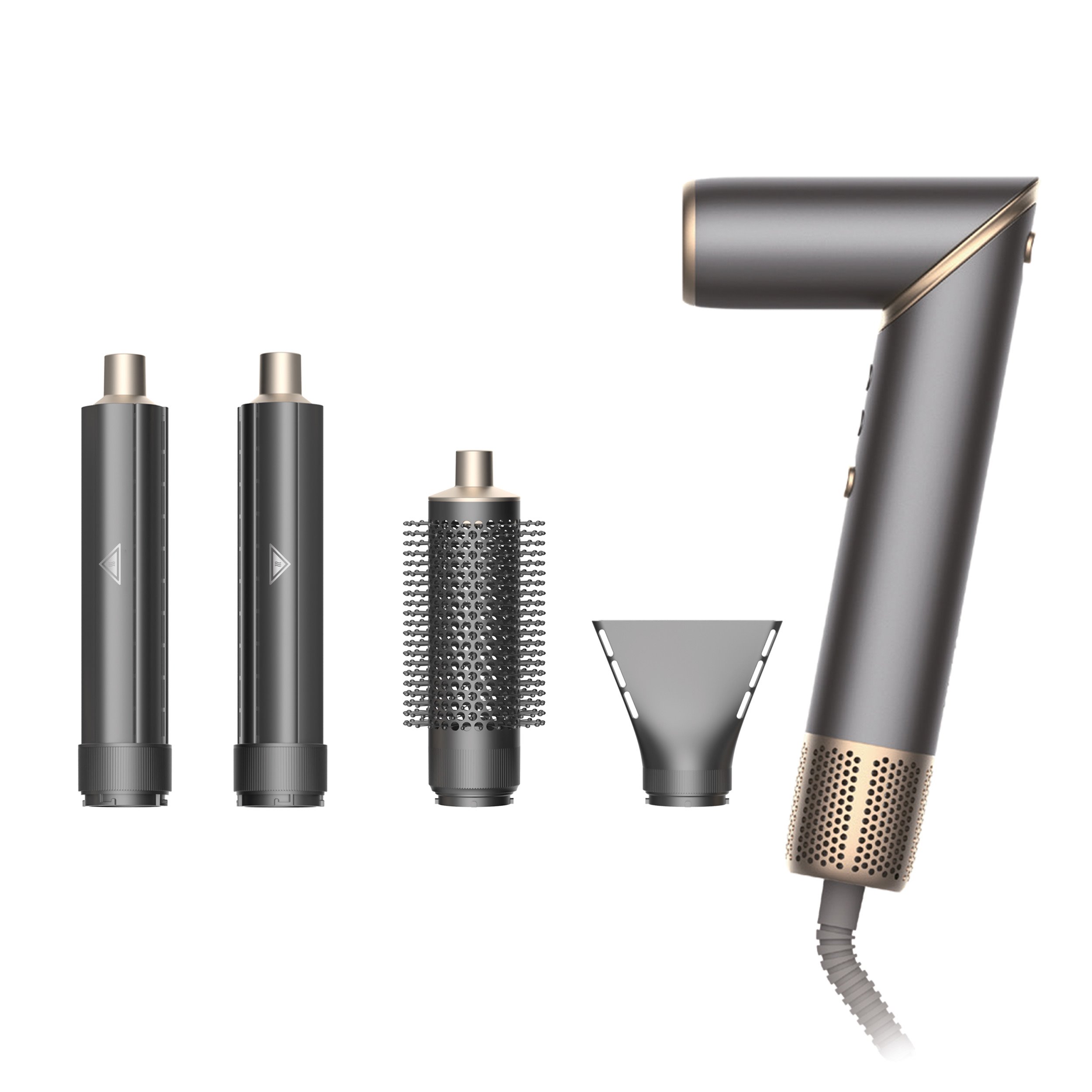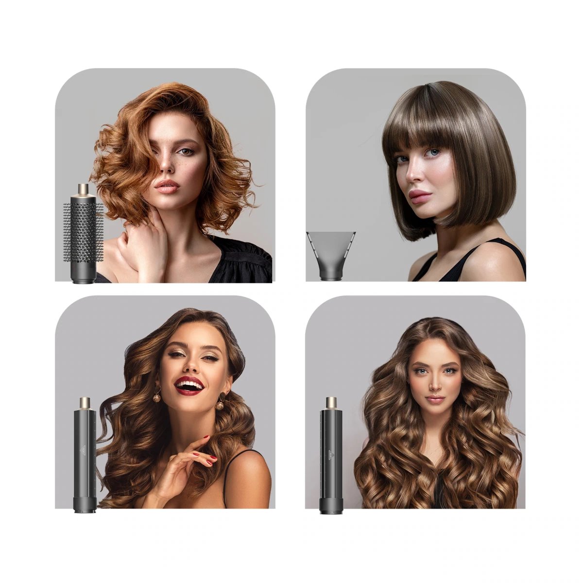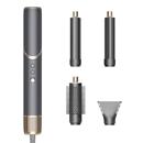Fén se přizpůsobí vašemu stylu i náladě. Součástí balení jsou čtyři nástavce – koncentrátor pro cílené vysoušení, tvarovací kartáč pro uhlazení a dva nástavce na vlny (levý a pravý) pro přirozené natočení vlasů proudem vzduchu. Bez složité manipulace tak snadno vytvoříte hladký účes, objem i jemné vlny – jedním přístrojem, bez nutnosti dalších pomůcek.