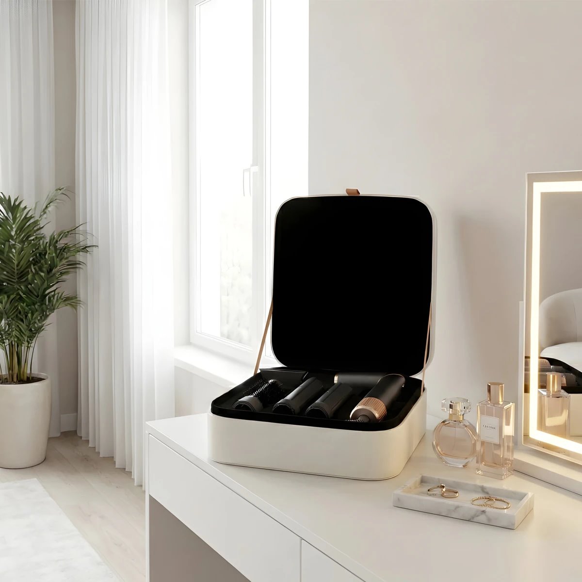 Součástí balení je designový kufřík s logem TESLA, který slouží jako elegantní ochrana i dárkové balení v jednom. Uvnitř má vše své místo, takže přístroj i nástavce zůstanou přehledně uložené a chráněné. Ideální řešení pro domácí použití, cestování i jako hodnotný dárek.
