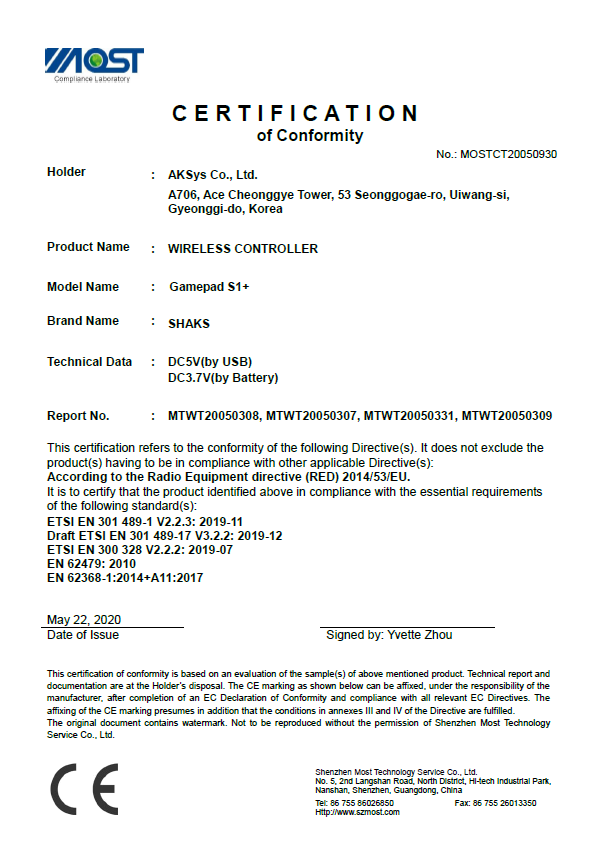 | SHAKS S1+ game controller | DOVTESHAKSS1 | 1pcs. | |||